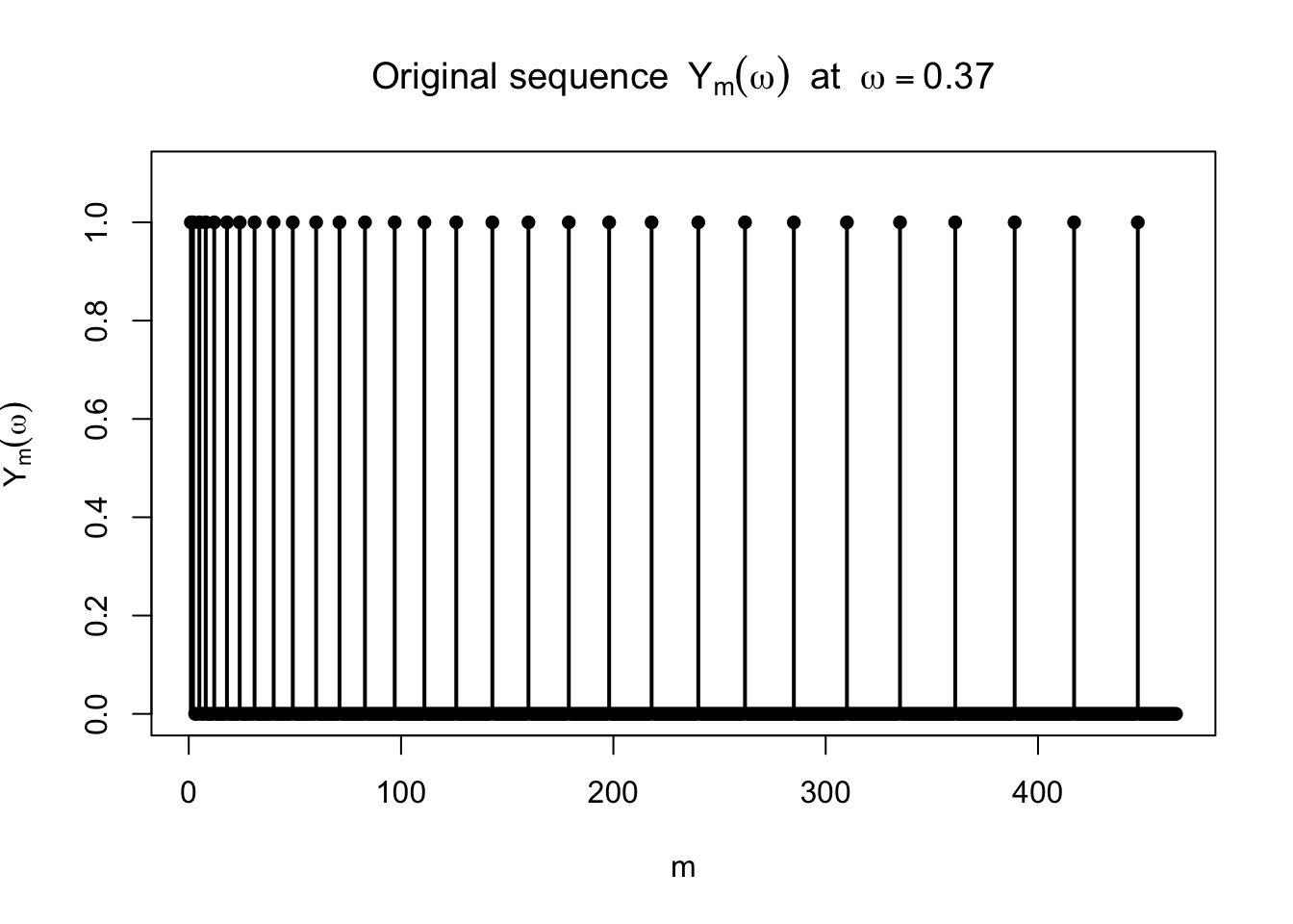 つまり,長さ \(2^{-m}\) の区間を左から順に走査するように 1 と 0 が現れる列になっている。