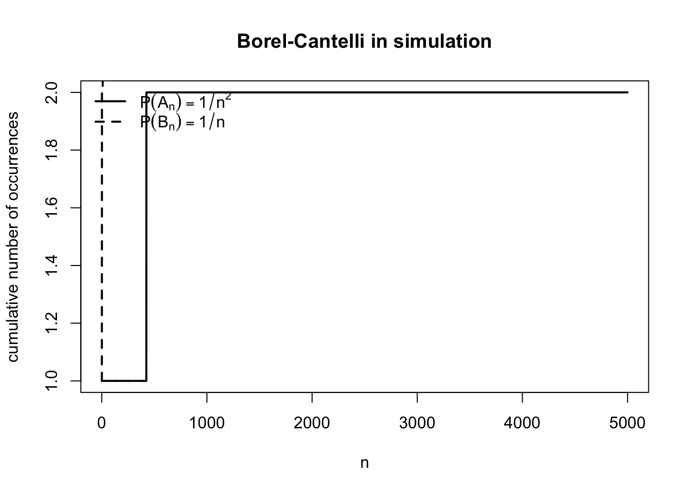 \] なので,このままでは第一ボレル・カンテリ補題を使えない。