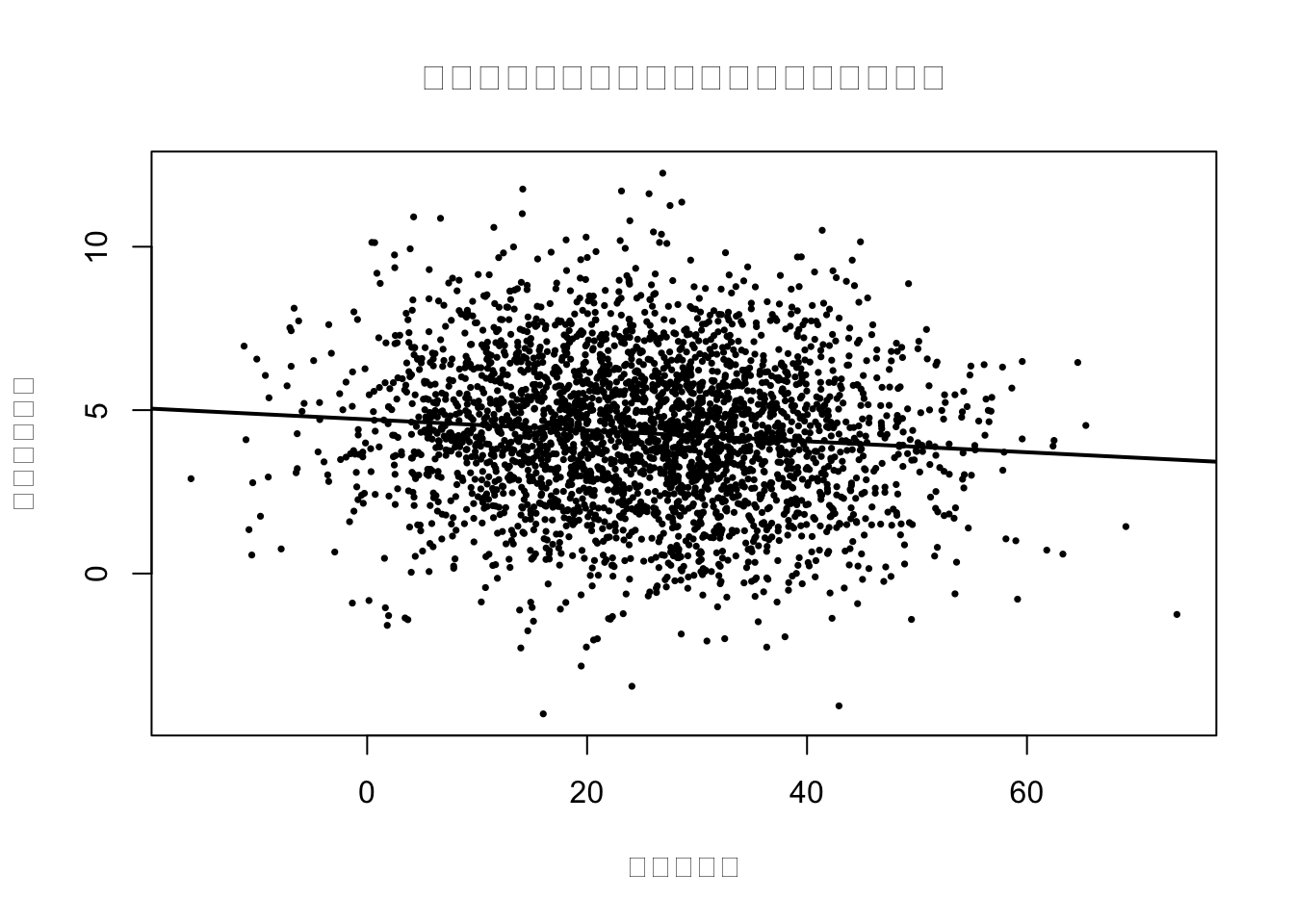 main = "自己負担額と外来受診回数の素朴な散布図" )