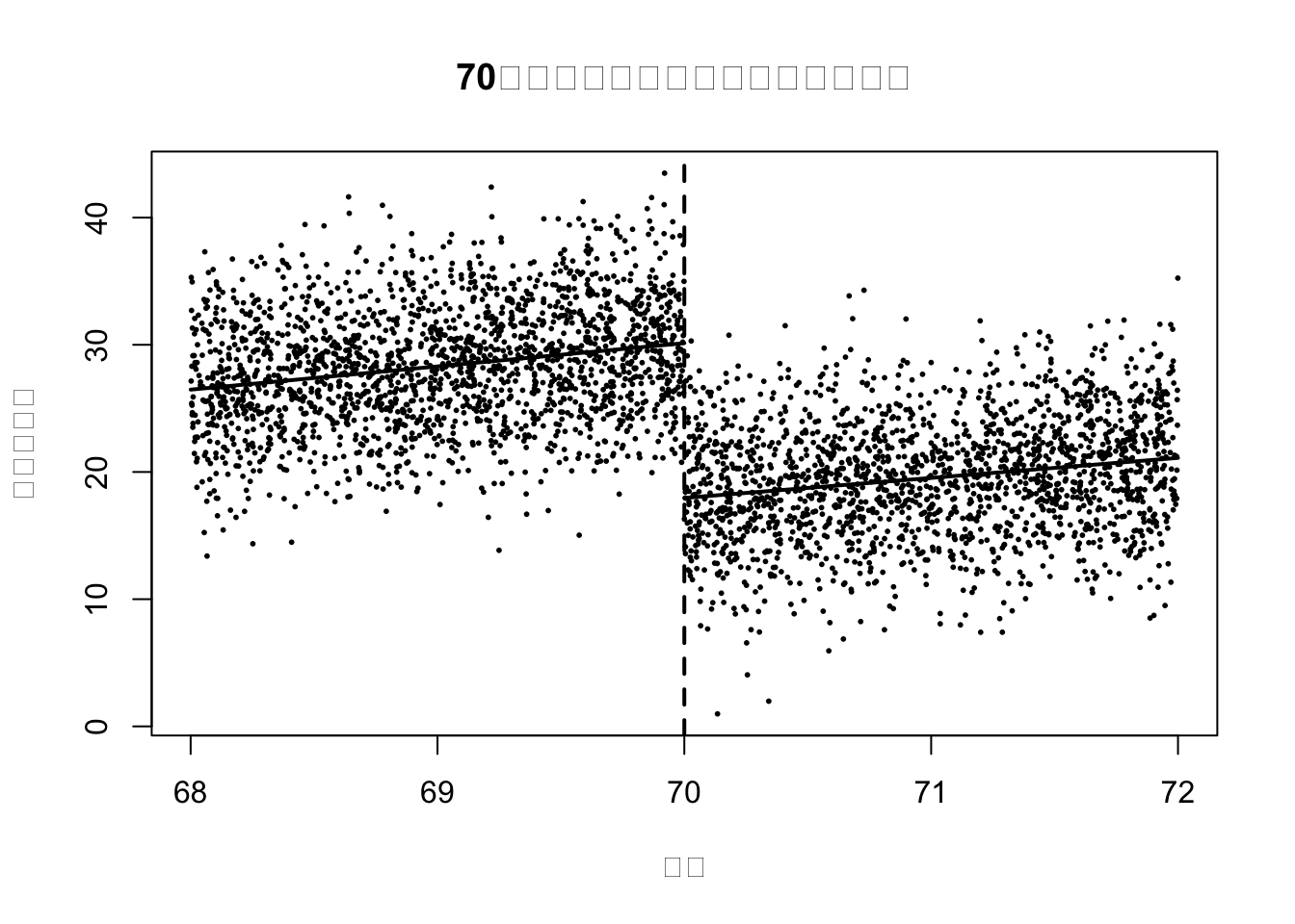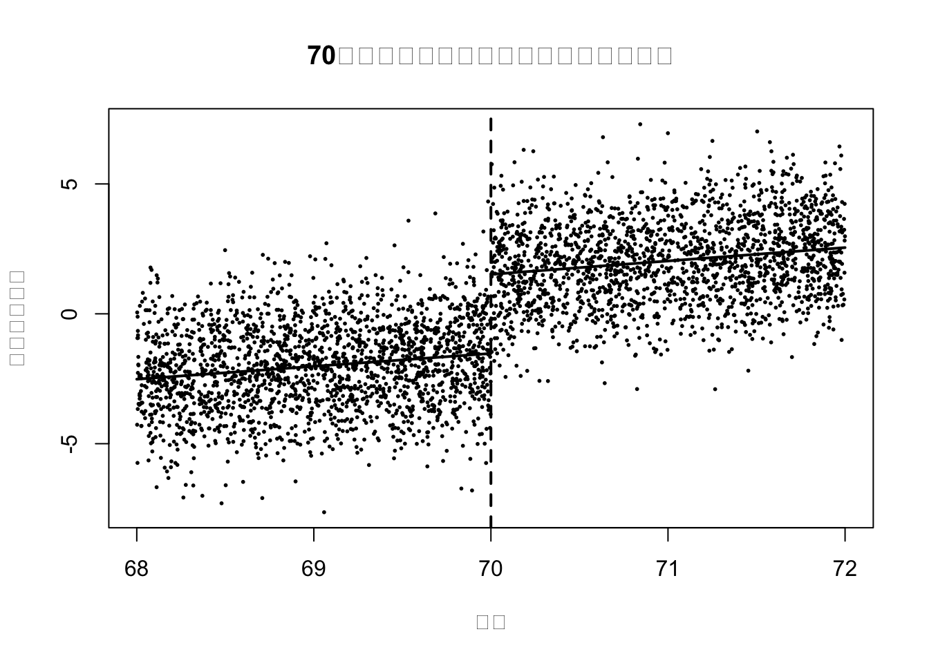 そこで著者は、この制度的な不連続を利用して、70 歳のところで