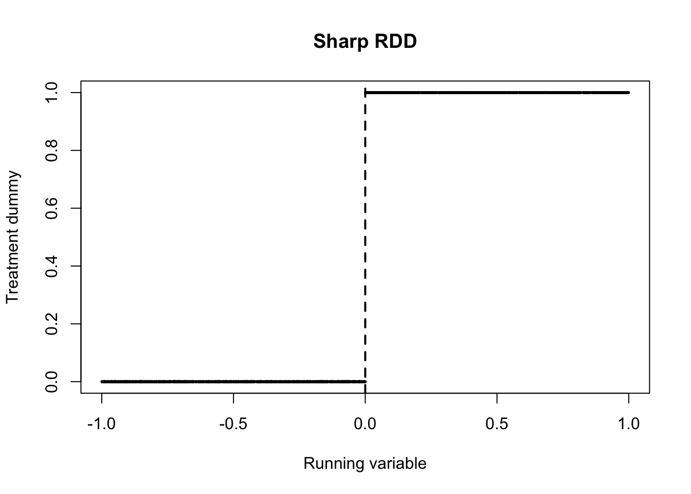 次に、sharp RDD と fuzzy RDD の識別の考え方をフォーマルに整理する。